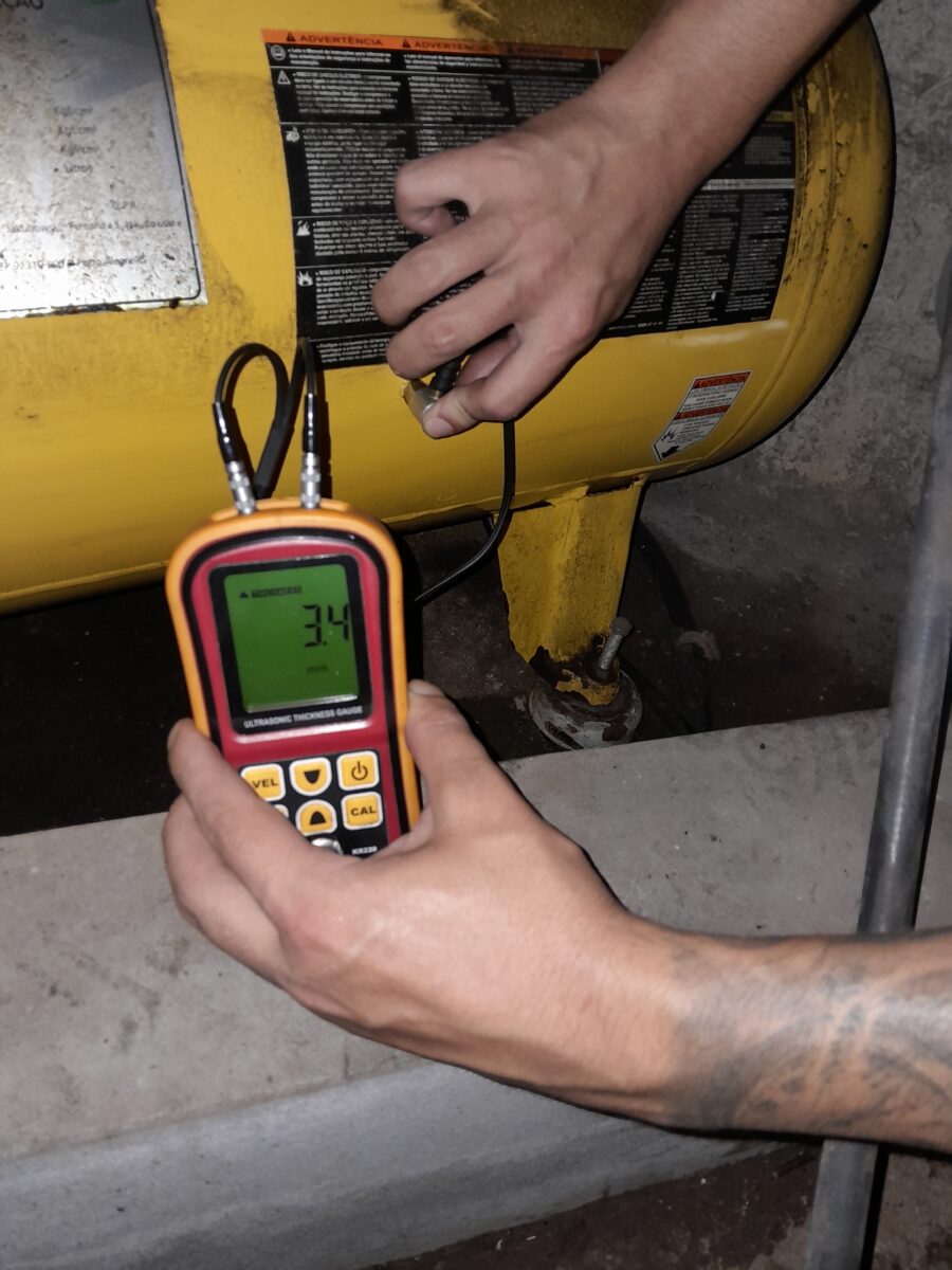 Solicitar orçamentoA inspeção tem como finalidade verificar os principais componentes de segurança e operação dos compressores. São realizadas diversas medidas de espessura no reservatório de ar, verificação da válvulas de segurança e manômetro, acompanhamento da pressão de operação em relação a PMTA, verificação do funcionamento do purgador, dentre outros itens analisados na vistoria.